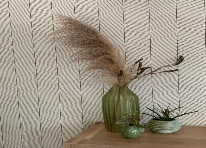 Een tijdje geleden kreeg ik een mooie opdracht. Op de foto´s kun je het eindresultaat bewonderen van dit project. Het is zo onwijs leuk als degene die je hulp heeft ingeroepen, zo enthousiast is over het plan, dat hij direct aan de slag gaat en daarbij ook alle voorgestelde materialen kiest. In dit geval bleven de meubels bestaan, dus daarop heb ik de rest van het plan -materiaal en kleurkeuze - aangepast. Ik vind het altijd een uitdaging om met iets dat blijft, verder te werken en dat dan juist nog mooier te laten uitkomen. Dit huishouden is van een man en mocht dus stoer, maar wel warm worden. Omdat de meubels van licht hout zijn, koos ik voor een antraciet tegelvloer. Het groen op de wanden in de zithoek in combinatie met het lijnenspel op de lange wand, zorgt voor warmte maar heeft ook een fris en stoer effect. Om het geheel compleet te maken, heb ik een verlichtingsplan gemaakt en zijn we op pad gegaan om accessoires en verlichting te shoppen. Ook dat behoort tot de mogelijkheden.